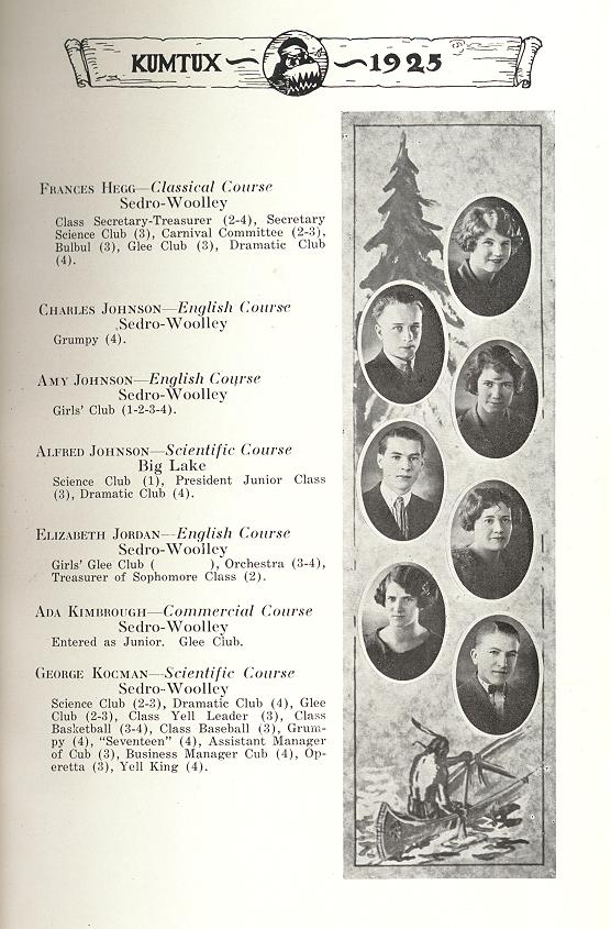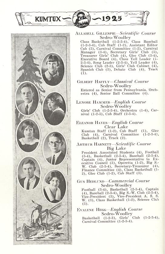 Allabell Gillespie, Gilbert Haffly, Lenore Hammer, Eleanor Hayes, Arthur Harnett, Gus Hedlund, Evalene Hegg, Frances Hegg, Charles Johnson, Amy Johnson, Alfred Johnson, Elizabeth Jordan, Ada Kimbrough, George Kogman