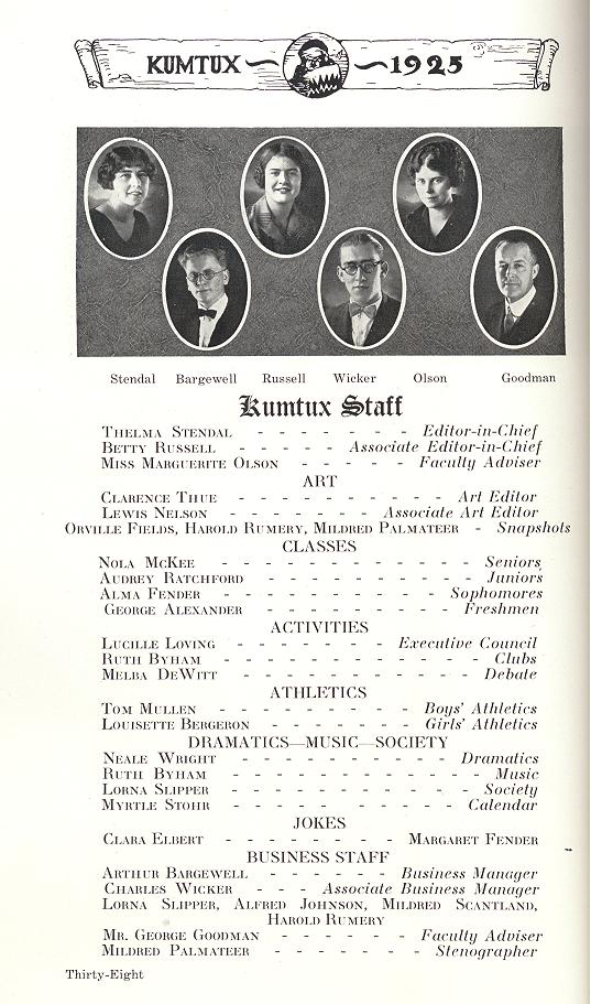 Arthur Harnett, Paul Alexander, Roy Bryson, Thelma Stendal, Allabell Gillespie, Joe Bladridge, Louisette Bergeron, Robert Harnett, Lorna Slipper, Mr. Campbell, Miss Case, Mr. Galligan, E. Laird, Scheyer, Biehler, L. BGergeron, Meyers, M. Bergeron