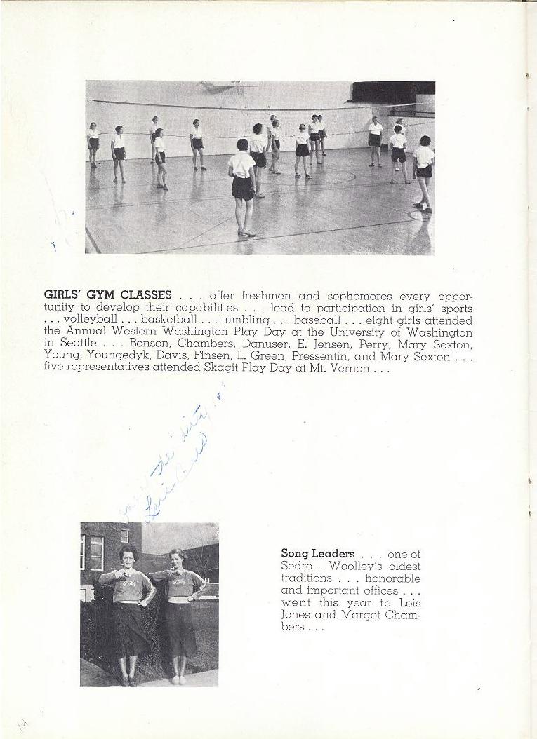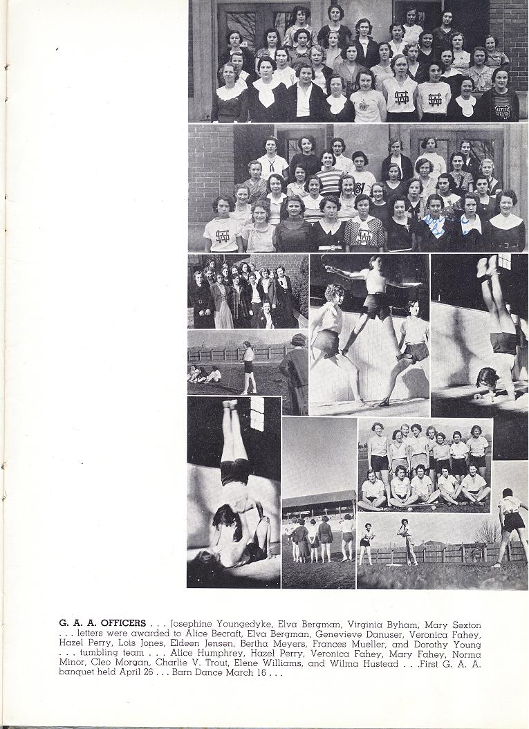 Lois Jones, Margot Chambers, Josephine Youngedyke, Elva Bergman, Virginia Byham, Mary Sexton, Alice Becraft, Genevieve Danuser, Veronica Fahey, Hazel Perry, Lois Jones, Eldeen Jensen, Bertha Meyers, Frances Mueller, Dorothy YOung, Alice Humphrey, Mary Fahey, Norma Minor, Cleo Morgan, Charlie V. Trout, Elene Williams, Wilma Hustead
