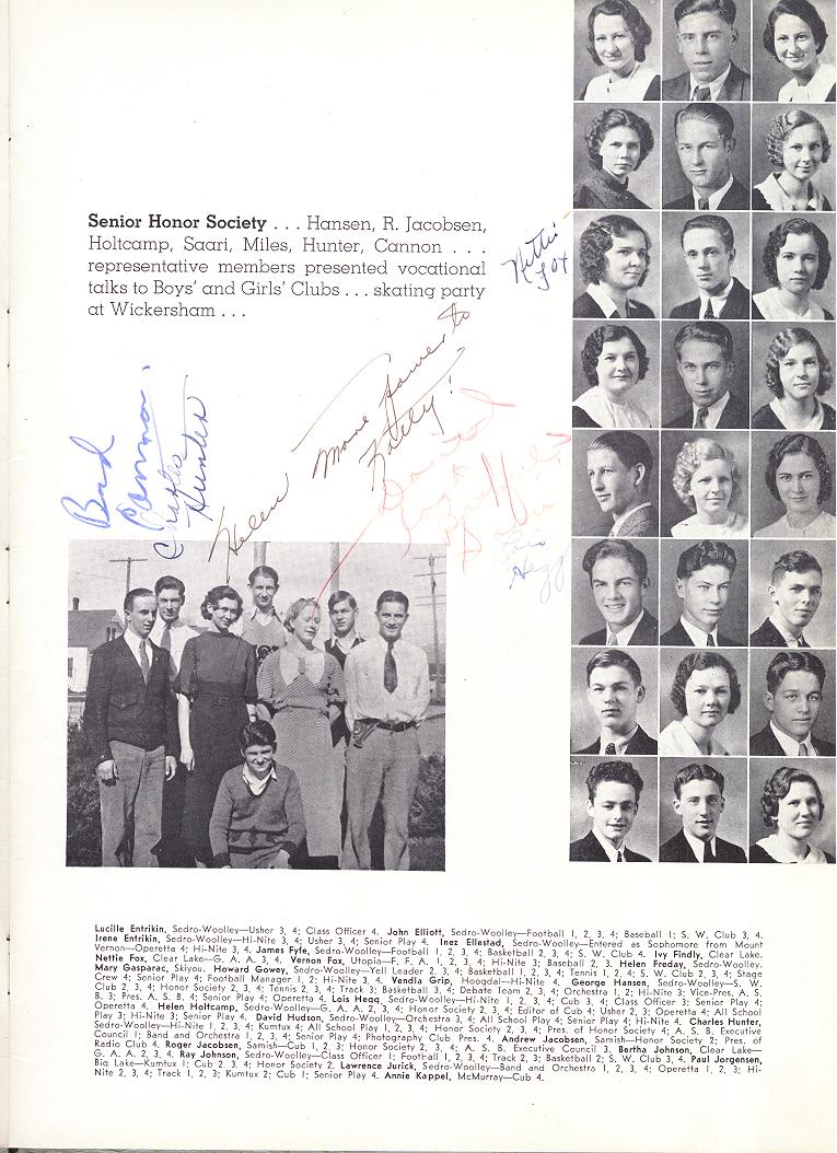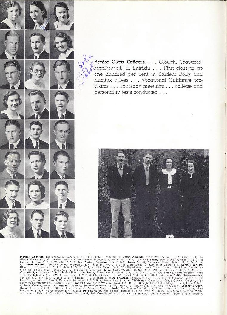 Marjorie Anderson, Jessie Arbuckle, Eunice Ash, Lawrence Bailey, Ivan Bakken, Laura Barrett, George Bassett, Dorothy Bartlett, Ruth Boyes, Ray Bussing, Ira Brown, Loren Calkin, Hugh Bryson, Harold Cannon, Allen Christenson, Robert Cline, Russell Clough, William Crawford, Jeannette Cully, Shannon Davis, Irple Dameron, Greer Drummond, Kenneth Edwards, Lucille Entrikin, John Elliott, Irene Entrikin, Inez Ellestad, Nettie Fox, Vernon Fox, Helen Freday, Mary Gasparac, Howard Gowey, Ivey Findly, Helen Freday, Vendia Grip, George Hansen, Lois Hegg, Helen Holtcamp, Charles Hunter, Roger Jacobsen, Andrew Jacobsen, Ray Johnson, Bertha Johnson, Paul Jorgensen, Lawrence Jurick, Annie Kappel