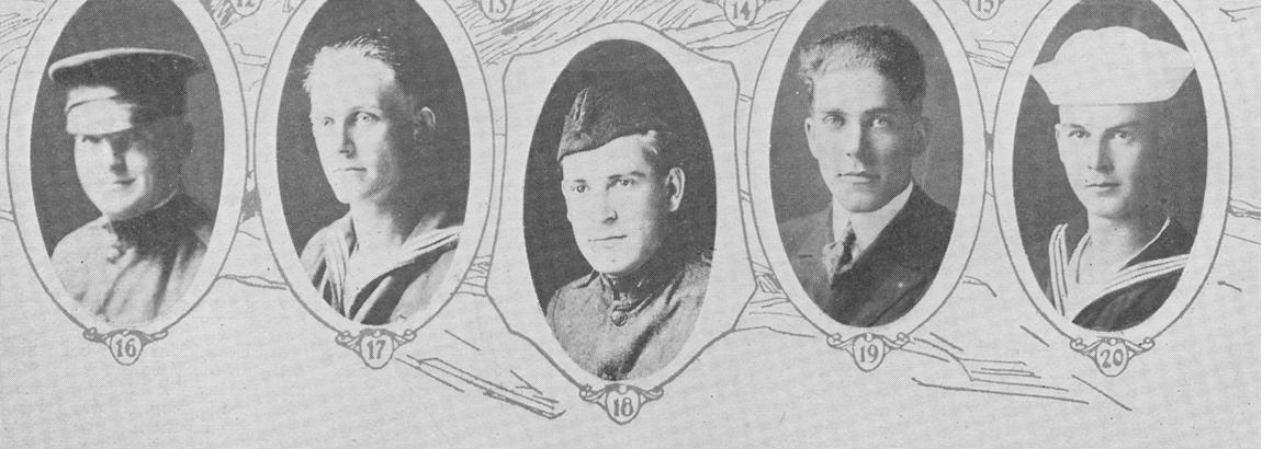 Ivor Owens Wallberg, Picture 20 Seaman, 2d Class, U.S. Navy; born in Douglass County WA, 5 Aug 1890; son of Edmond and Ella Wallberg, Friday Harbor WA; entered service 6 Apr 1918; promoted to machinist's mate 2d class; released on reserve 11 Feb 1919.