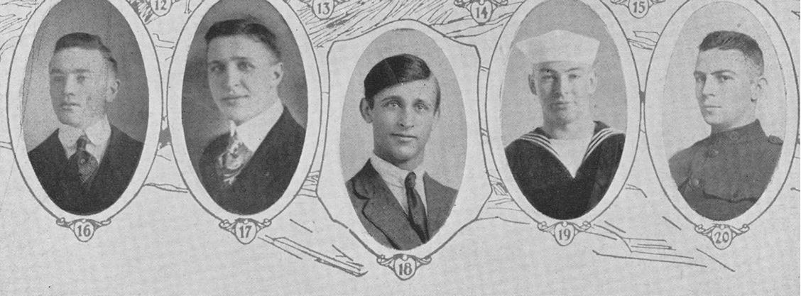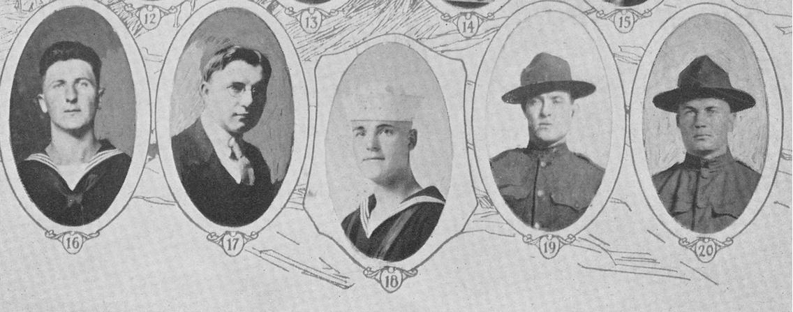 Smith, James Dewey Seaman, 2d Class, U.S.N.R.F., Naval Unit, W.S.C.., Pullman WA; Picture 19 born at Hamilton WA, 20 Apr 1898; son of Mr. and Mrs. James H. Smith, Hamilton Wa; entered service at Pullman Wa, 3 Oct 1918; mustered out on reserve, 17 Dec 1918.