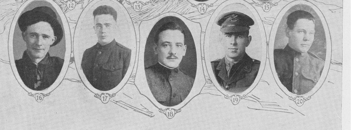 Shannon, Dewey Talmadge Sergeant, No. 12, Construction Corps, Canadian Army; Picture 14 born at Abilene KS, 14 Mar 1884; son of Robert C. and Olive Shannon, Hamilton WA; entered service from Vancouver B. C., 31 Mar 1916; transferred from Vancouver Barracks B. C., to Quebec; to England; to Scotland; to France; promoted from private to corporal, to sergeant; in battles of Lens, Mons, Louvaine; 30 months overseas, mustered out at Vancouver B. C., 3 Mar 1919.