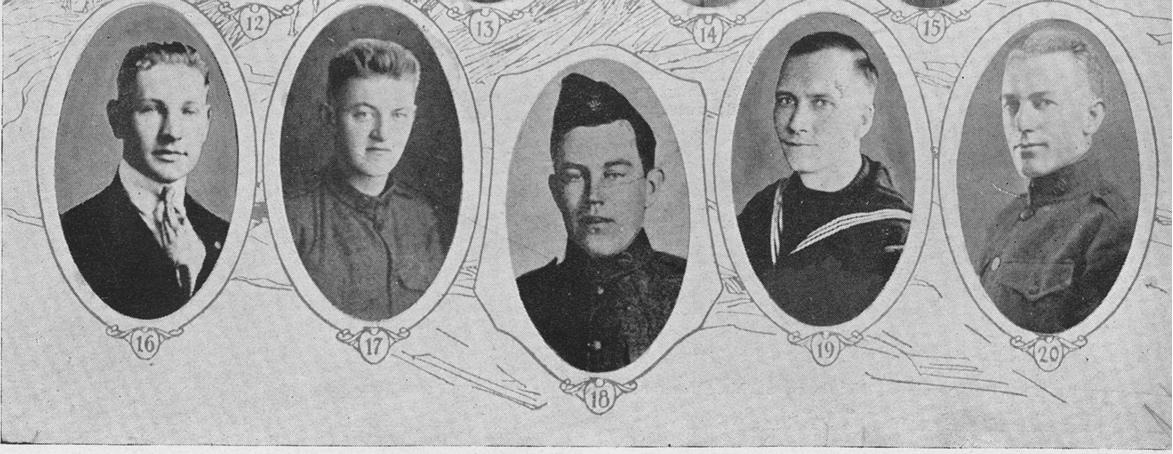 Lawson, David J. Private, S.A.T.C., Willamette University, Salem OR; Picture 9 born at LaConner WA, 27 Dec 1897; son of A. J. and Emily Lawson, Blanchard WA; entered service at Salem OR; mustered out at Salem, 12 Dec 1918.