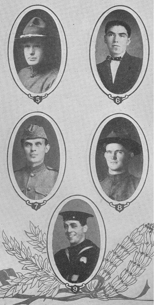 John W. McLennan, Picture 8 Quartermaster, 1st Class, U.S.N.; born at Victoria B.C., 6 Oct 1896; son of Mr. and Mrs. C. F. McLennan, Orcas WA; entered service at Seattle WA, 14 Dec 1917; transferred from N. T. S. at San Diego CA to Naval Air Sta, San Diego; to Philadelphia PA; to Chatham MA; promoted to quartermaster 1st class; served on patrol duty; encountered German super-submarine; mustered out at Bremerton WA, 30 Aug 1919.